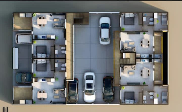 DEPARTAMENTO A: 50 MTS APROX. 3 AMBIENTES, PATIO CON PARRILLA Y LAVADERO, ESTACIONAMIENTO VEHICULAR.